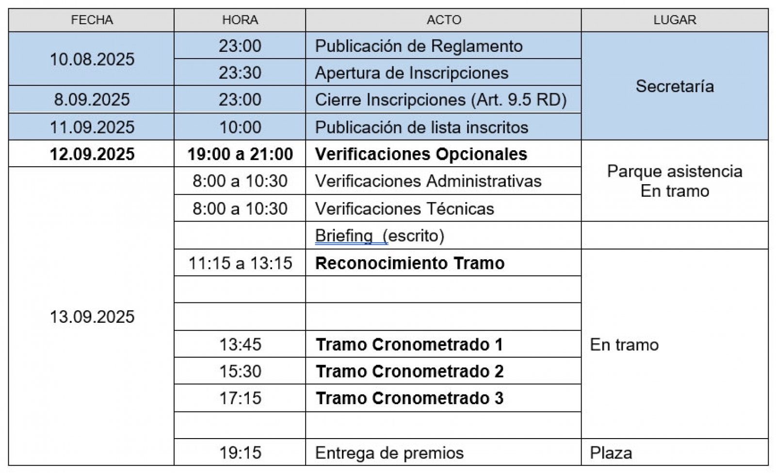 - Para los reconocimientos tenéis 30 minutos, todos los que superen el tiempo serán PENALIZADOS que según el artículo 17.8 R.D. sería de 1 minuto por cada minuto de retraso.
